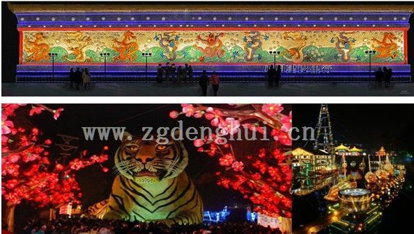 (二)2010年第十六屆自貢國際恐龍燈會經(jīng)貿(mào)交易會,由自貢市燈貿(mào)委創(chuàng)意的最多陶瓷器皿組成的《中華第一壁》燈組、最多啤酒瓶組成的《鹽都古韻》燈組、體積最大的仿真皮毛造型《天下第一虎》燈組,被評為“大世界基尼斯之最”。